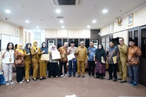 BKPSDM Batam – Sekretaris Daerah Kota Batam menyerahkan SK Pensiun dan Piagam Penghargaan kepada 22 pegawai di Lingkungan Pemerintah Kota Batam yang memasuki Batas Usia Pensiun (BUP) TMT 01 Januari 2025 yang bertempat di Ruangan Holding Lantai I Kantor Wali Kota Batam pada Senin (30/12/2024).