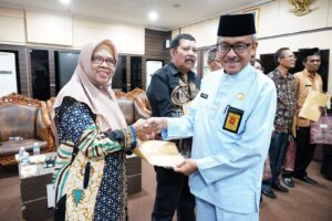BKPSDM Batam – Sekretaris Daerah Kota Batam menyerahkan SK Pensiun dan Piagam Penghargaan kepada 9 pegawai di Lingkungan Pemerintah Kota Batam yang memasuki Batas Usia Pensiun (BUP) TMT 01 Februari 2025 yang bertempat di Ruangan Holding Lantai I Kantor Wali Kota Batam pada Jum’at (31/1/2025).