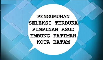 Diberitahukan kepada seluruh peserta yang lulus seleksi administrasi, pada seleksi terbuka Jabatan Pimpinan Tinggi Pratama Direktur Rumah Sakit Umum Daerah Embung Fatimah Kota Batam, untuk dapat mengikuti assessment test yang akan diselenggarakan pada: